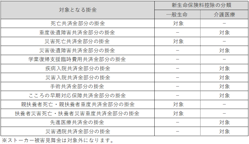 《CO・OP学生総合共済》(CO・OP学生総合共済 新社会人コース含む)は「一般の生命保険料」と「介護医療保険料」に該当します。